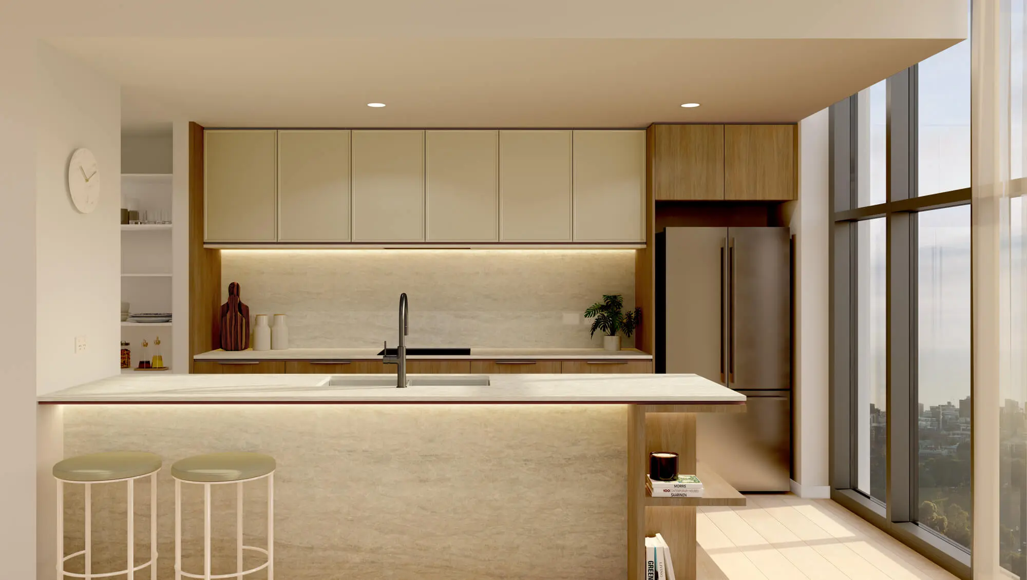 The site's position is what defines the project. Positioned directly on the parklands, apartments capture views from parkland to skyline—perspectives that cannot be compromised by future development. We've designed generous balconies and floor-to-ceiling glazing throughout to capitalize on these sightlines, while curated material palettes and European appliances establish the interior standard. Resident amenities include wellness and leisure facilities that complement the parklands at your doorstep.